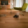 Piso de madera ingeniería Sucupira Natural, marca Indusparquet, parte de la colección Elegance, disponible en formatos de 9,5 y 12,5 mm de espesor. Esta colección que se caracteriza por su textura lisa, que atrae a los tradicionalistas como a aquellos con un toque moderno y contemporáneo.