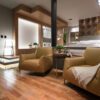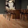 Piso de madera ingeniería Amendoim, marca Indusparquet, parte de la colección Elegance, disponible en formatos de 9,5 y 12,5 mm de espesor. Esta colección que se caracteriza por su textura lisa, que atrae a los tradicionalistas como a aquellos con un toque moderno y contemporáneo.
