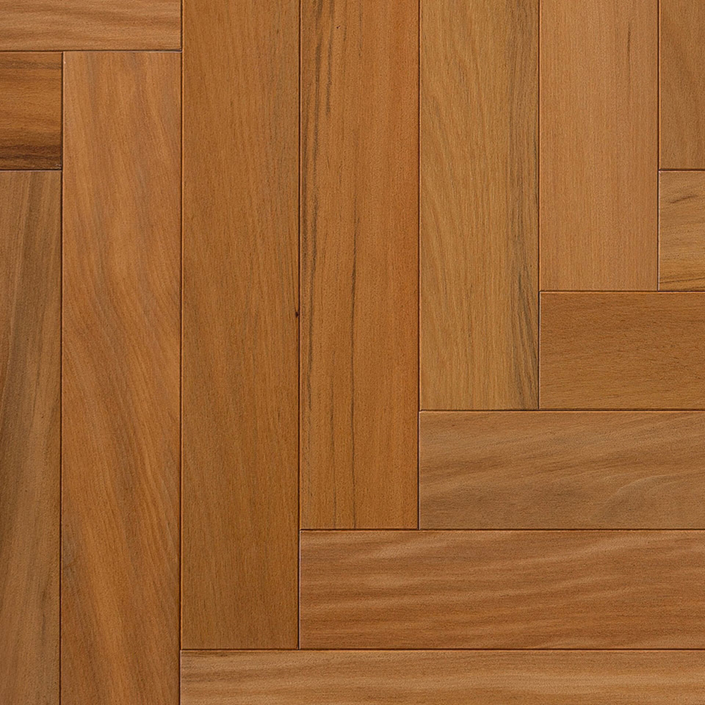 Piso de madera ingeniería Peroba Natural, marca Indusparquet, es parte de la colección Reale, que se caracteriza por diseños tipo parquet para instalación en patrones, disponible en formatos de 12,5 y 19 mm de espesor. Esta colección retoma la tradición del parquet mejorando su ingeniería de construcción y diseño de instalación.