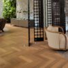 Piso de madera ingeniería Tauari WD, marca Indusparquet, es parte de la colección Reale, que se caracteriza por diseños tipo parquet para instalación en patrones, disponible en formatos de 12,5 y 19 mm de espesor. Esta colección retoma la tradición del parquet mejorando su ingeniería de construcción y diseño de instalación.